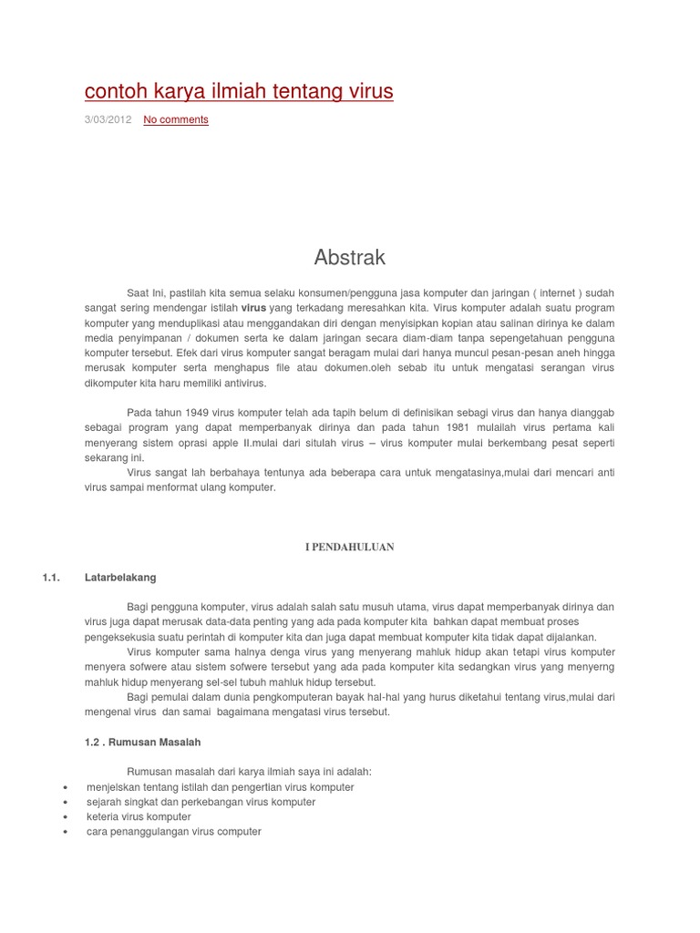 Contoh karya ilmiah tentang sampah yang mungkin bisa jadi sebuah rujukan adalah cara mengatasi sampah platik di lingkungan sekitar. Hal ini merupakan langkah yang dilakukan untuk mengurangi penyebaran virus. Contoh makalah tentang virus zika. Download kumpulan contoh lengkap mengenai contoh kata pengantar tentang virus secara gratis disini termasuk contoh undangan ulang tahun cdr, contoh undangan ulang tahun format cdr, contoh undangan ulang tahun untuk guru dalam bahasa inggris, dan masih banyak contoh lain yang. Siti enggan berkomentar tentang permintaan presiden susilo bambang yudhoyono yang memintanya menarik buku dari peredaran.