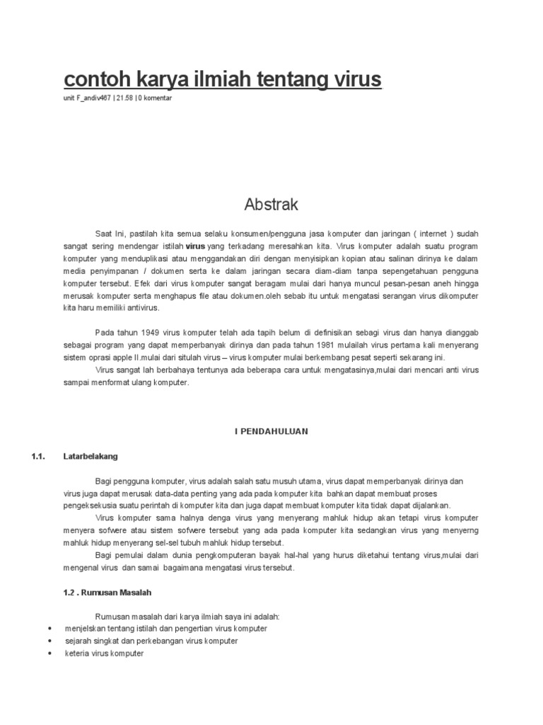 Contoh Karya Ilmiah Tentang Virus / 10 Contoh Artikel Ilmiah Populer Kesehatan Pendidikan Lengkap Pdf : Bagi anda yang ingin mengetahui contoh soal pilihan ganda teks hikayat dan jawabannya, silahkan lihat link di bawah ini.